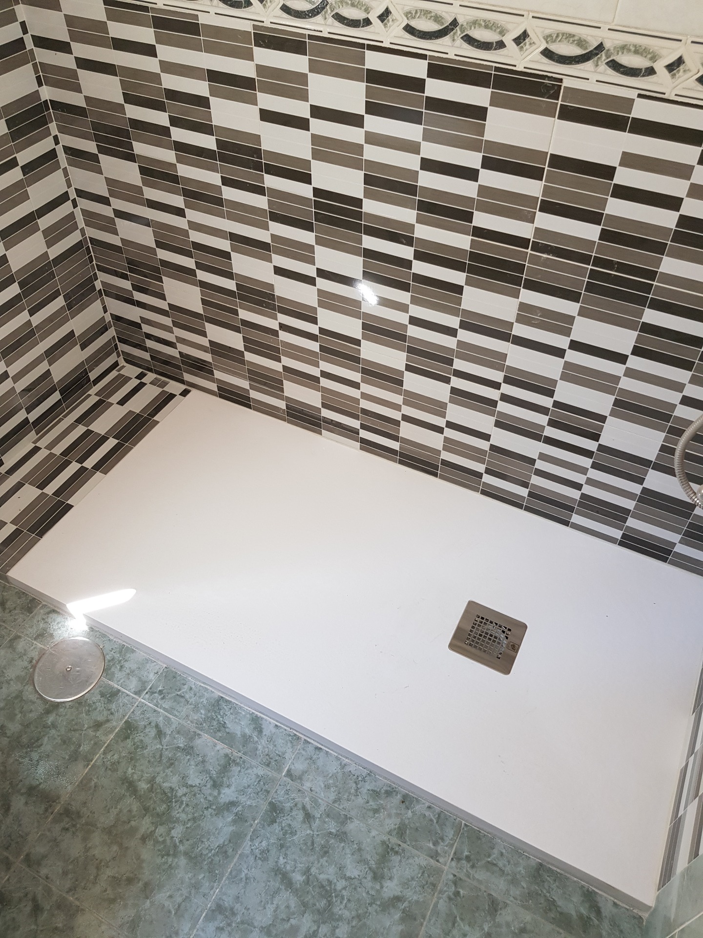 En este artículo estamos instalando un plato de ducha de resina cuadrante en la esquina de un baño.