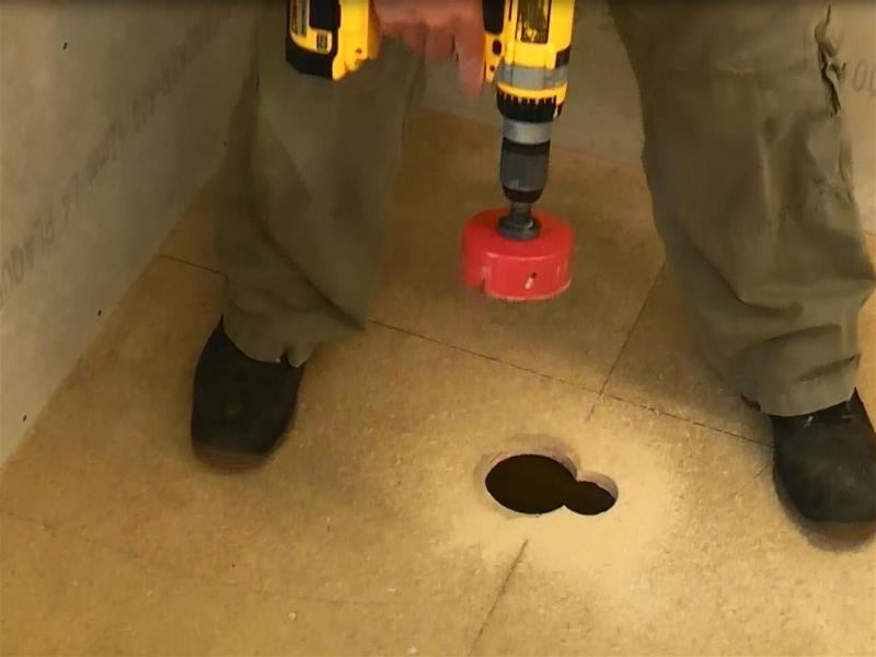 Coloque la válvula de desague en su posición y apunte la salida en la dirección de la tubería ´´desague´´ debajo del piso, luego dibuje alrededor de ella